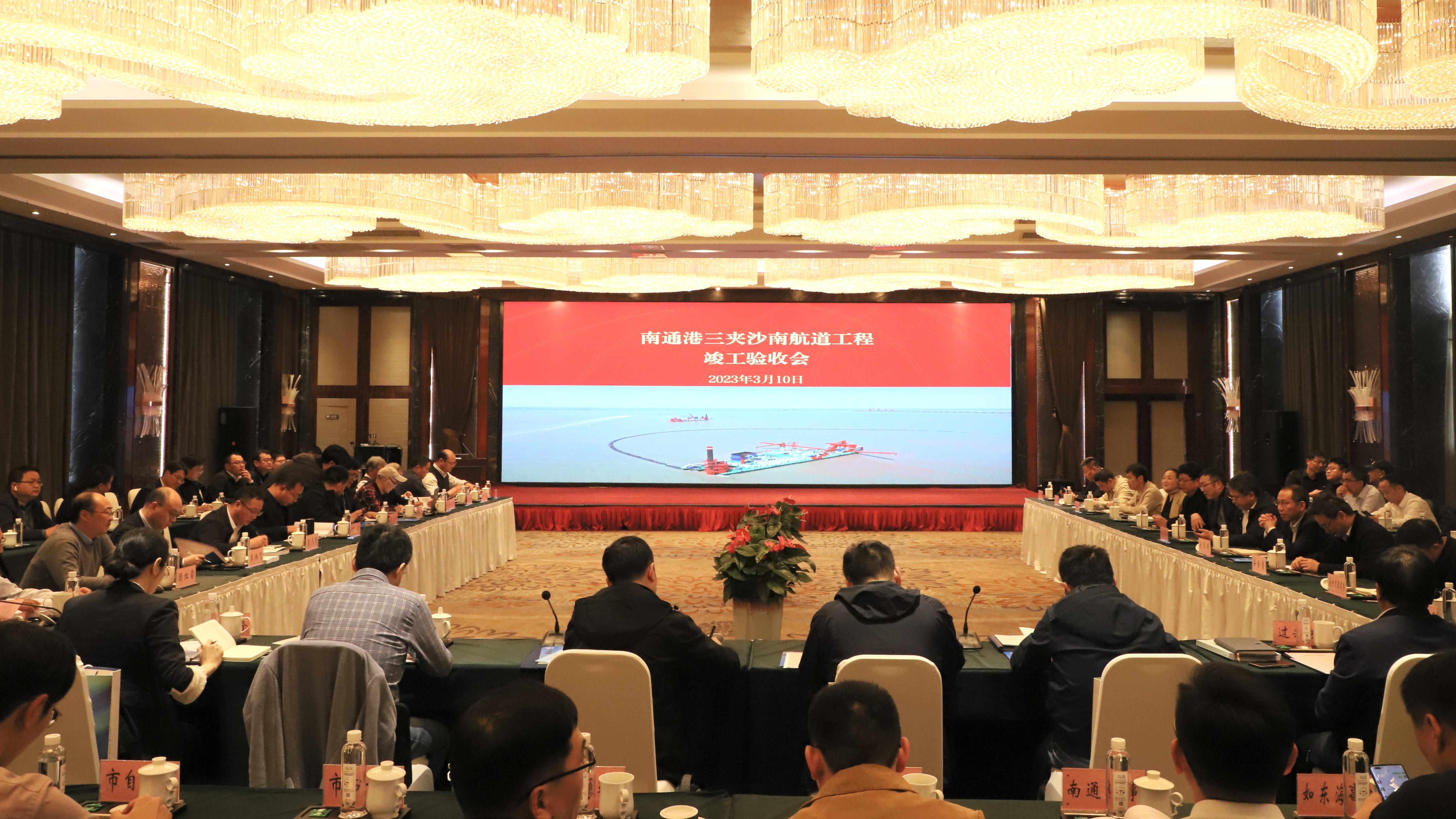 近日,由市交通運輸局組織召開的南通港三夾沙南航道工程竣工驗收會在通州灣召開。省交通運輸廳、江蘇海事局、省自然資源廳、省交通運輸綜合行政執(zhí)法監(jiān)督局及市有關(guān)部門領(lǐng)導出席會議,集團總工程師過興發(fā)參加會議。