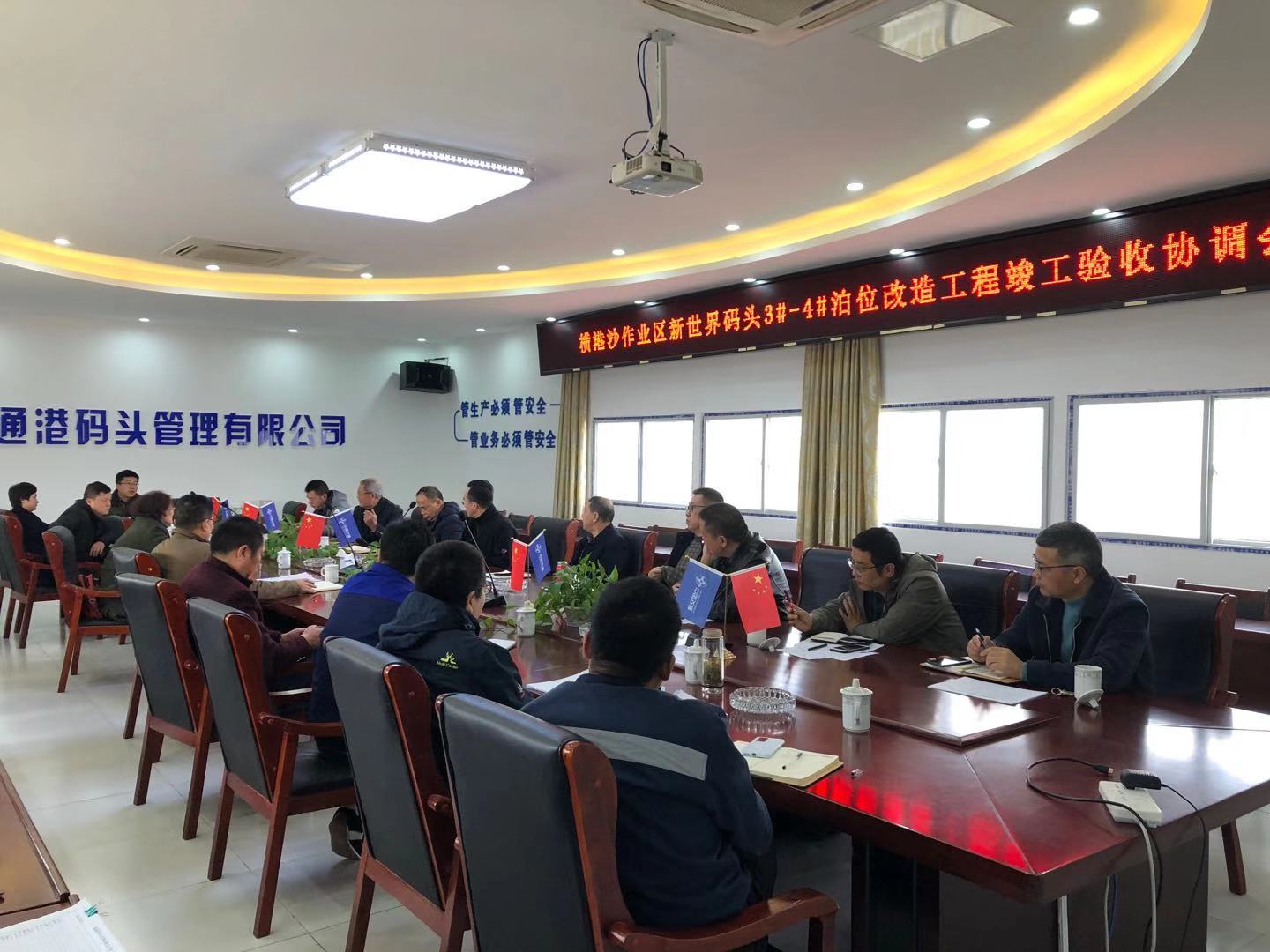 12月1日,碼頭管理公司在橫港沙項目部會議室牽頭組織召開橫港沙3#-4#泊位改造工程竣工驗收工作協調會。南通市港口工程質監站、碼頭公司、中交三航局、中交機電局、上海東華、中國船級社等單位的領導、代表及特邀專家參與會議。