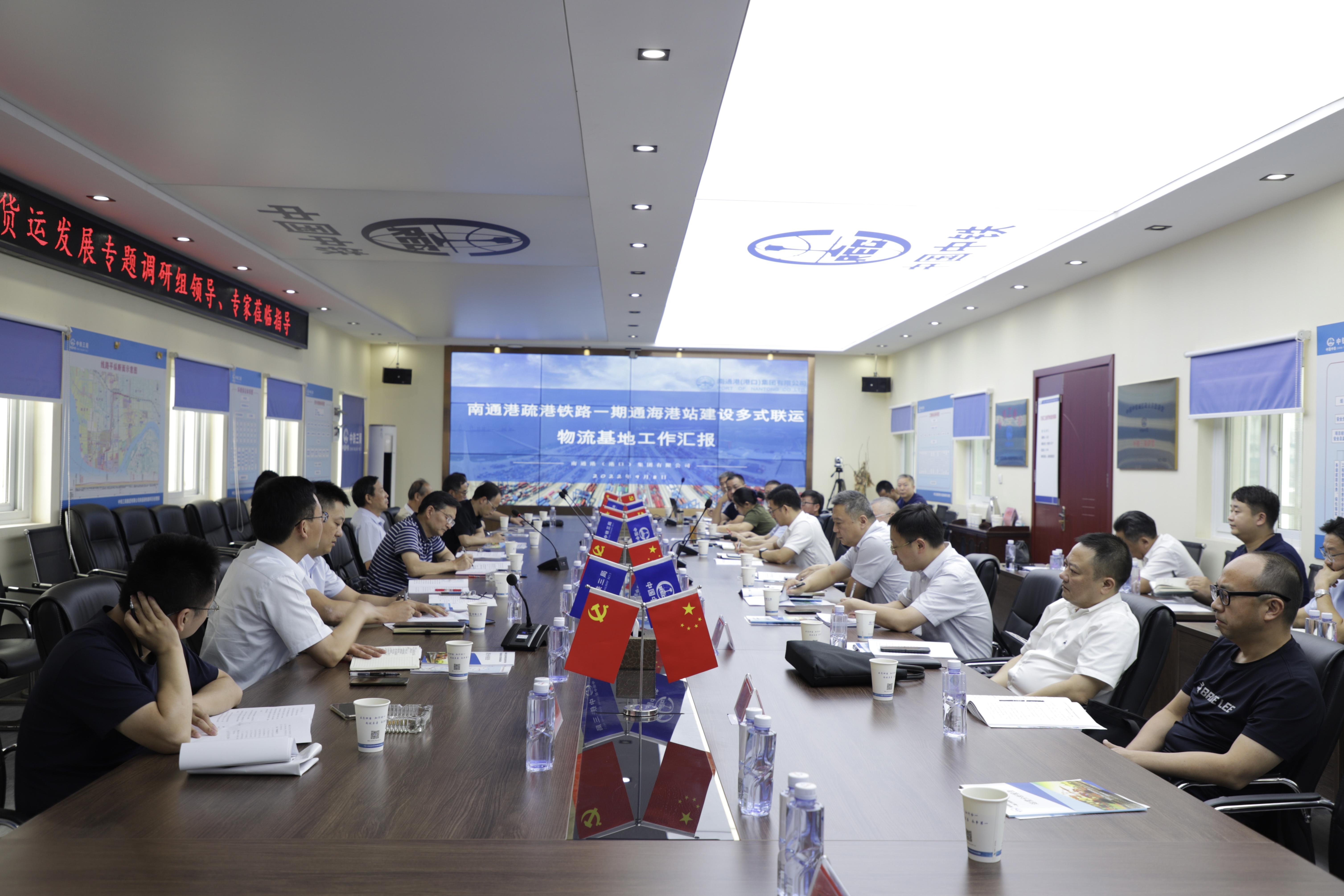 在通海港站建設(shè)現(xiàn)場(chǎng),南通港(港口)集團(tuán)有限公司副董事長(zhǎng)崔劍向省調(diào)研組介紹了通海港區(qū)二期工程規(guī)劃、多式聯(lián)運(yùn)中心物流樞紐體系、疏港鐵路通海港站建設(shè)等情況。座談會(huì)上,通海鐵路公司黨支部書記、董事長(zhǎng)顧焱華向調(diào)研組一行匯報(bào)了項(xiàng)目建設(shè)、投資情況及下階段重點(diǎn)工作計(jì)劃;鐵路公司總經(jīng)理鎮(zhèn)杰作了通海港站多式聯(lián)運(yùn)物流基地運(yùn)營(yíng)分析的工作匯報(bào)。